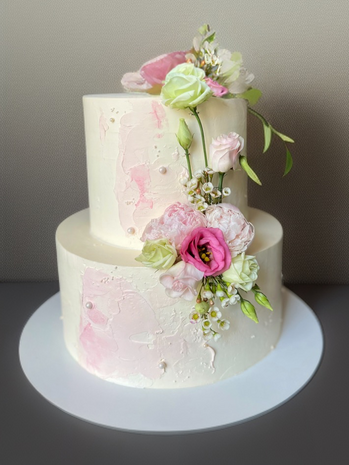 Cena svadobnej torty začína od 5 EUR s DPH za porciu, ale konečná cena závisí od ceny kvetov, celkovej výzdoby a prácnosti vyhotovenia. Torta môže byť zdobená živými kvetmi, modelovanými cukrovými ozdobami, jedlým zlatom, ovocím, zápichom s menami - fantázii sa medze nekladú. Veľmi nám pomôže, keď nám zašlete obrázok